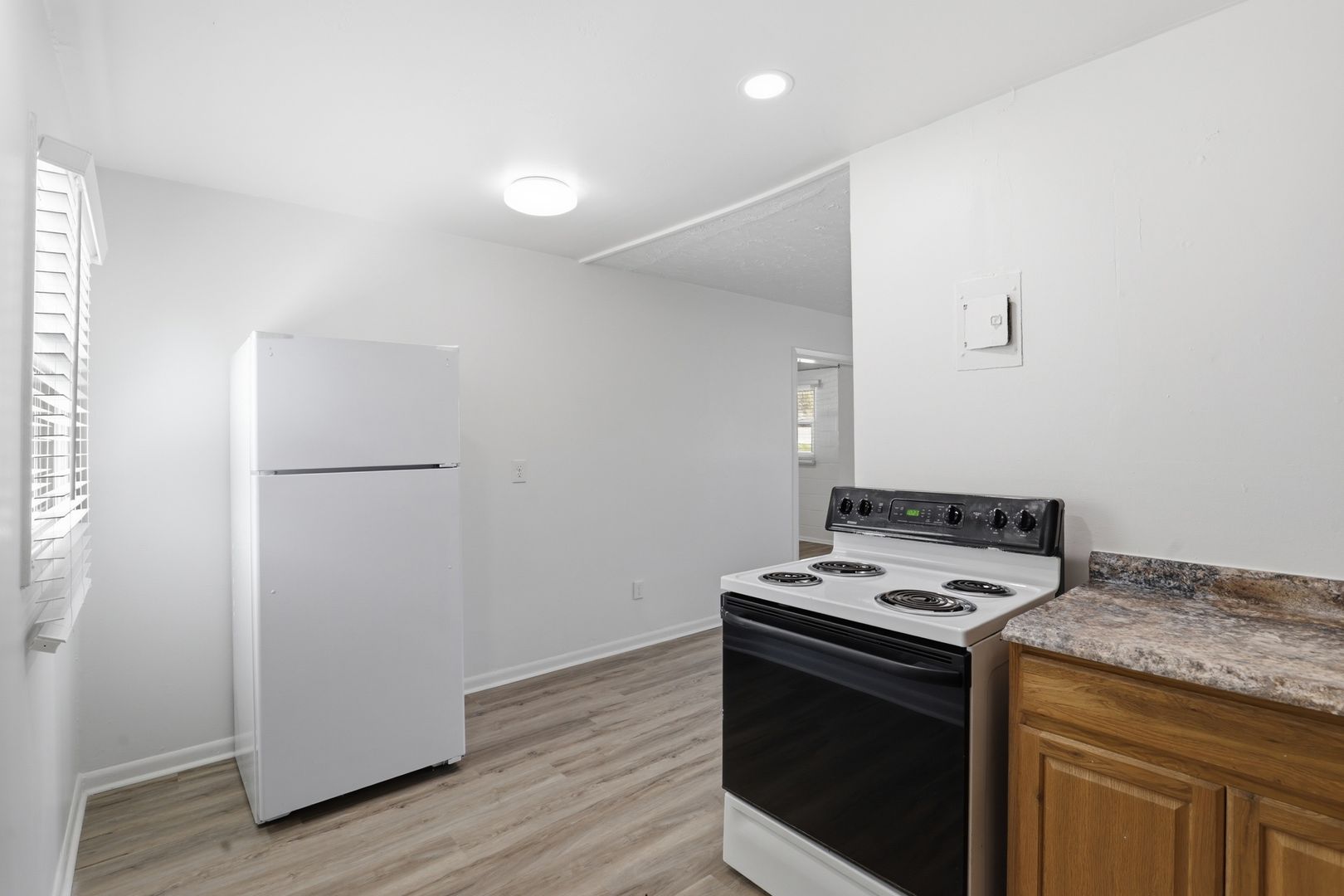 Cozy 3 BR 1 Bath home in a fantastic location. Recent updates include interior and exterior paint, new windows, new vinyl plank flooring, new refrigerator and remodeled bathroom with walk in shower, vanity, mirror and attractive light fixtures. Convenient to shopping, hospitals, restaurants and I75.