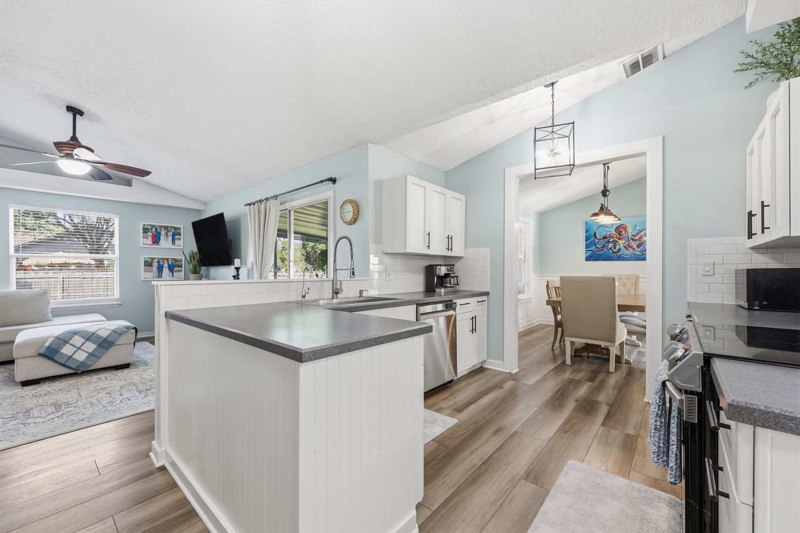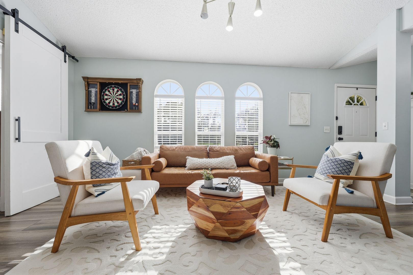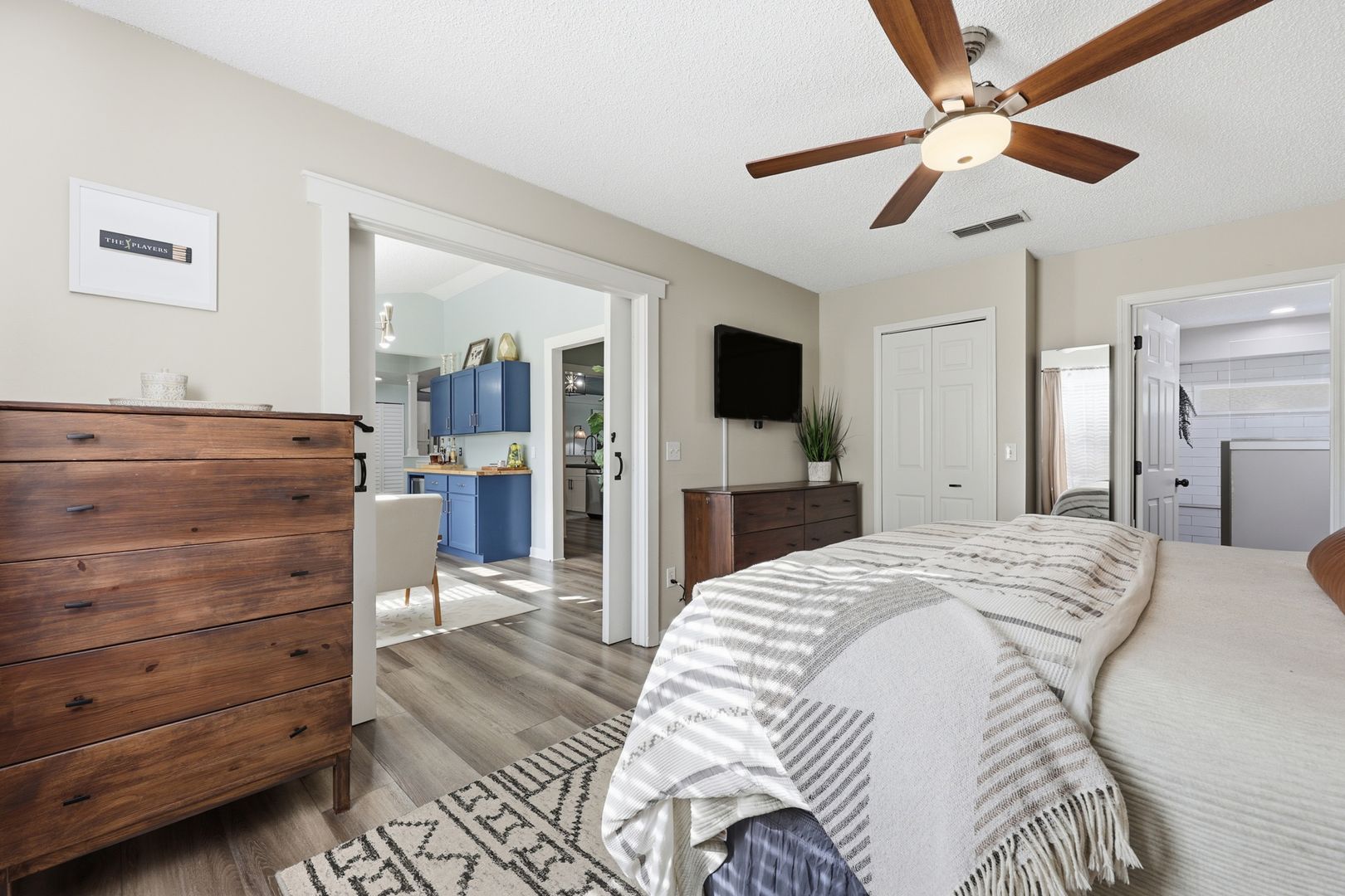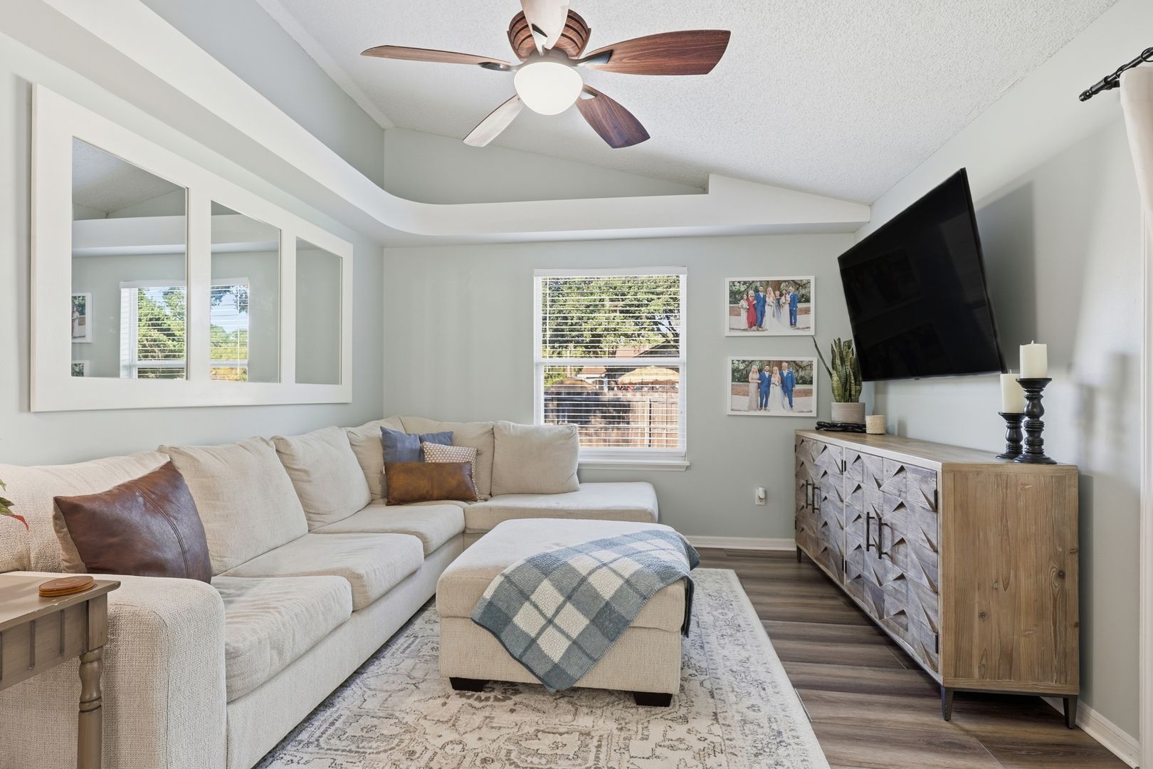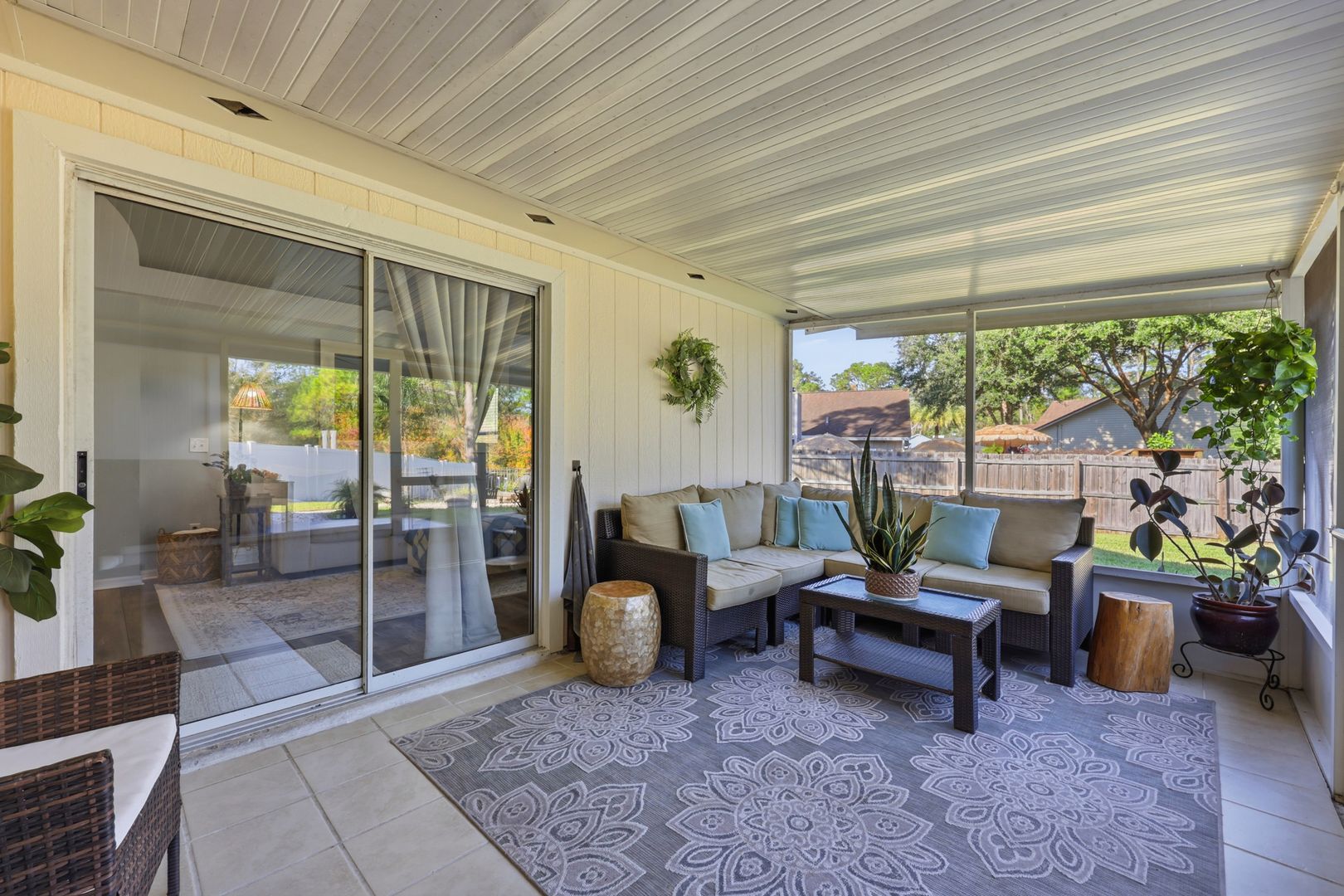 Come live on a private cul-de-sac with an enormous, fenced back yard and incredible water view! This three bedroom home has been meticulously maintained and updated over the past few years. There is durable LVP flooring throughout, beautiful light fixtures and window treatments in each room. The kitchen features a double door fridge with ice and water dispensers, electric range, dishwasher and microwave. Brand new washer and dryer with 5 year warranty. The kitchen overlooks one of two living areas and a separate, private dining area. The second living area features a built in bar with beverage cooler and extra cabinet space. This home is a split floor plan. The primary easily fits a king sized bed, walk in closet and a recently updated primary bath with newer vanity, light fixtures and a walk in shower. The other two bedrooms are located on the opposite end of the home and share a bathroom. The large screened in porch is perfect for relaxing while overlooking the massive backyard. There is a uniquely designed firepit with gravel walkway and lush greenery. Amenities in the neighborhood include a huge pool, tennis/pickleball courts, basketball courts and a playground. Call to experience this beautiful home today!