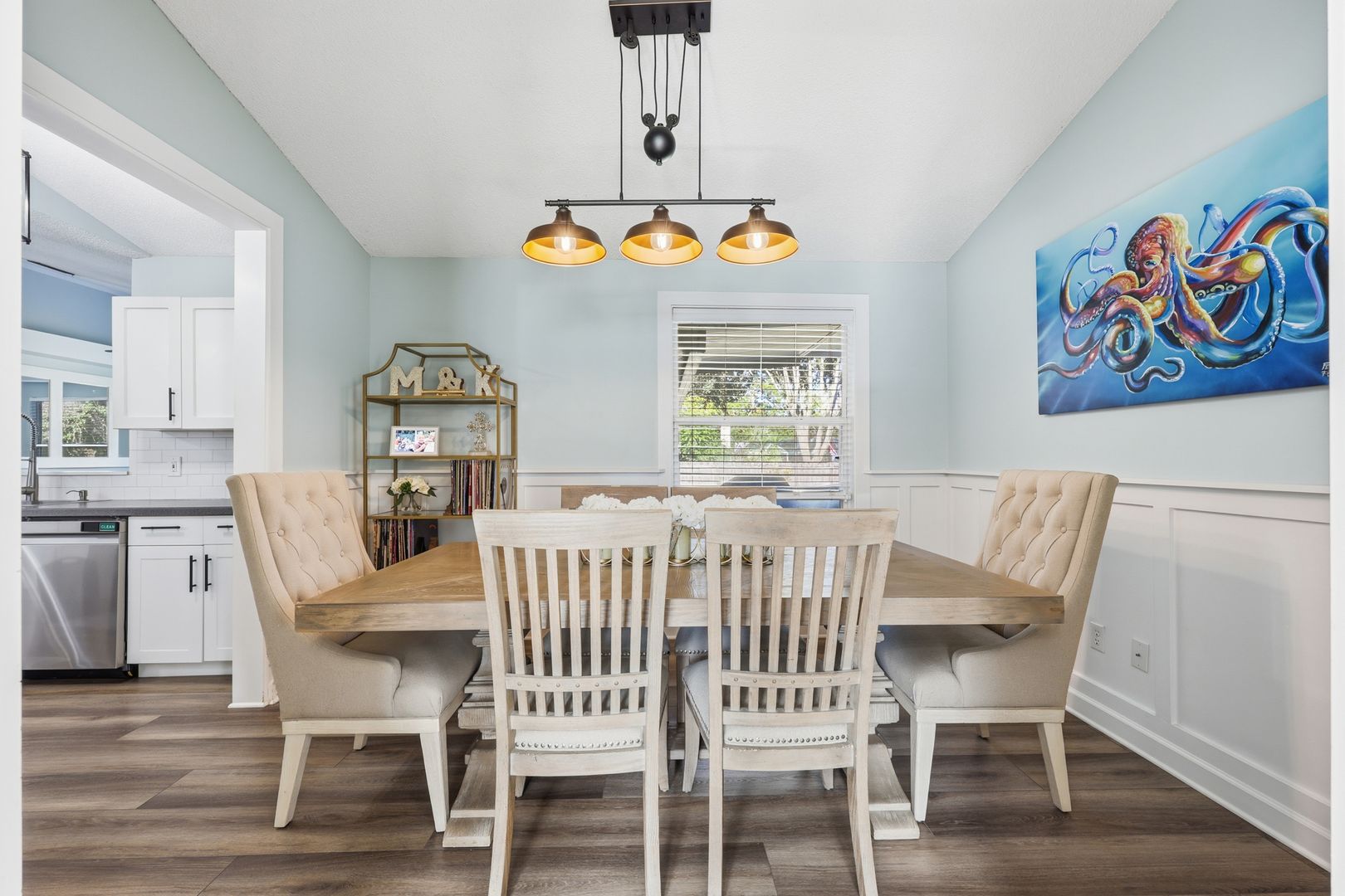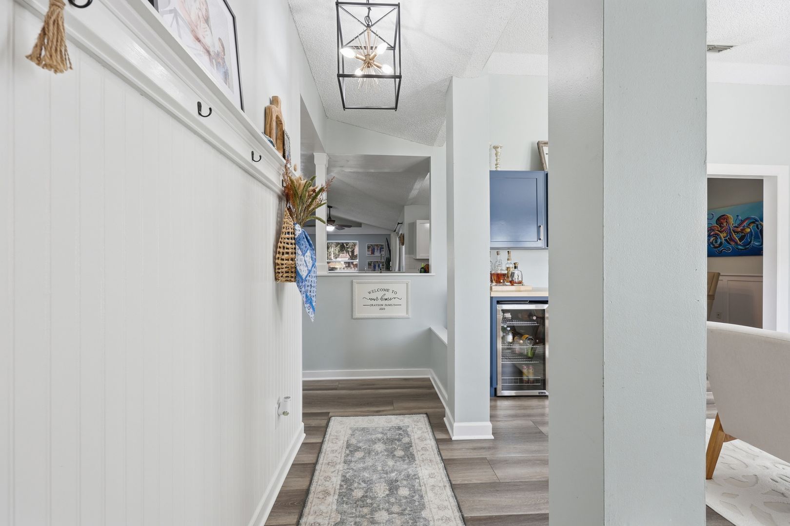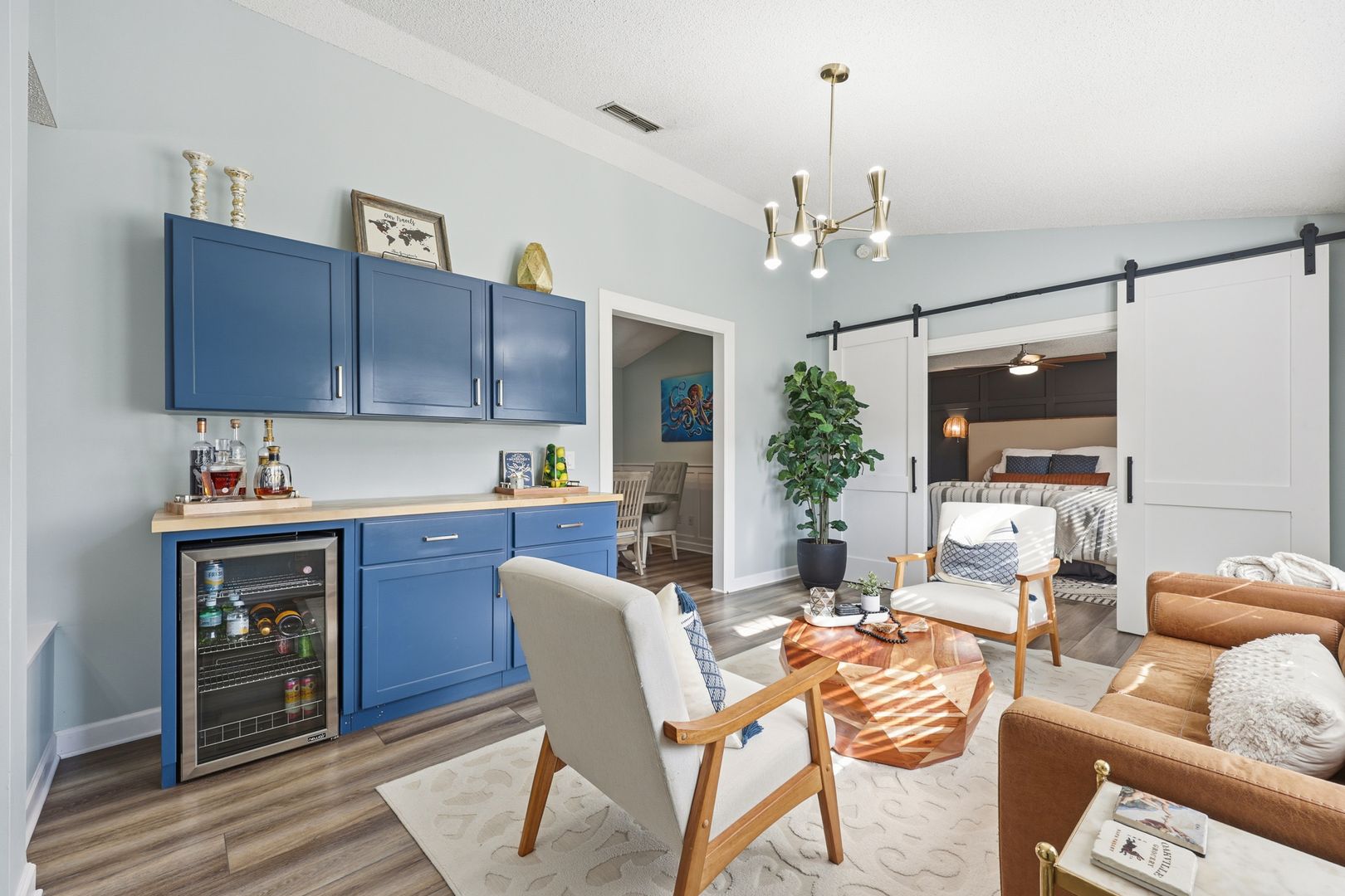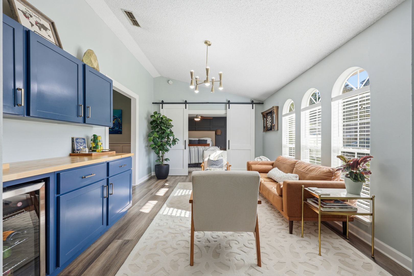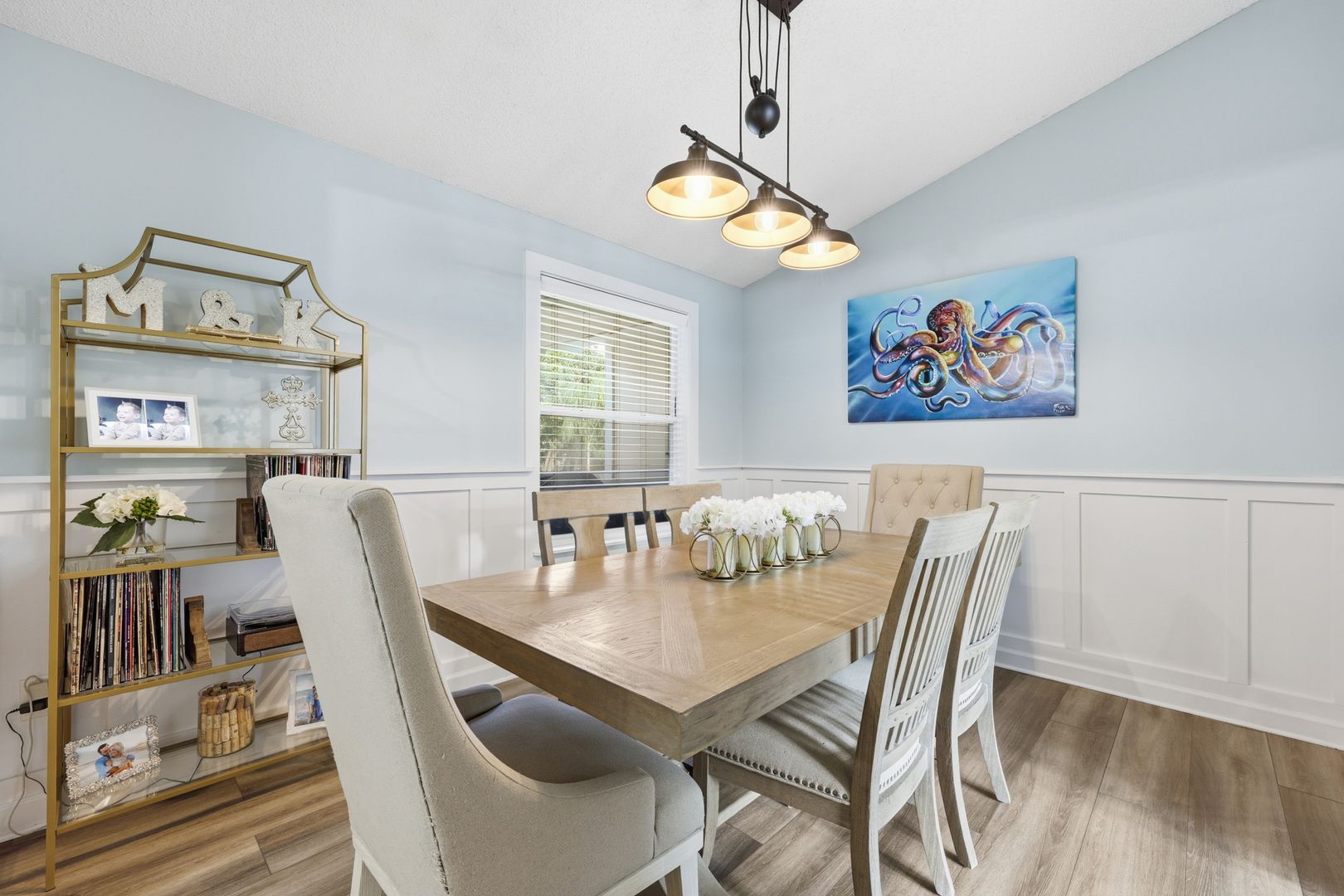 Come live on a private cul-de-sac with an enormous, fenced back yard and incredible water view! This three bedroom home has been meticulously maintained and updated over the past few years. There is durable LVP flooring throughout, beautiful light fixtures and window treatments in each room. The kitchen features a double door fridge with ice and water dispensers, electric range, dishwasher and microwave. Brand new washer and dryer with 5 year warranty. The kitchen overlooks one of two living areas and a separate, private dining area. The second living area features a built in bar with beverage cooler and extra cabinet space. This home is a split floor plan. The primary easily fits a king sized bed, walk in closet and a recently updated primary bath with newer vanity, light fixtures and a walk in shower. The other two bedrooms are located on the opposite end of the home and share a bathroom. The large screened in porch is perfect for relaxing while overlooking the massive backyard. There is a uniquely designed firepit with gravel walkway and lush greenery. Amenities in the neighborhood include a huge pool, tennis/pickleball courts, basketball courts and a playground. Call to experience this beautiful home today!