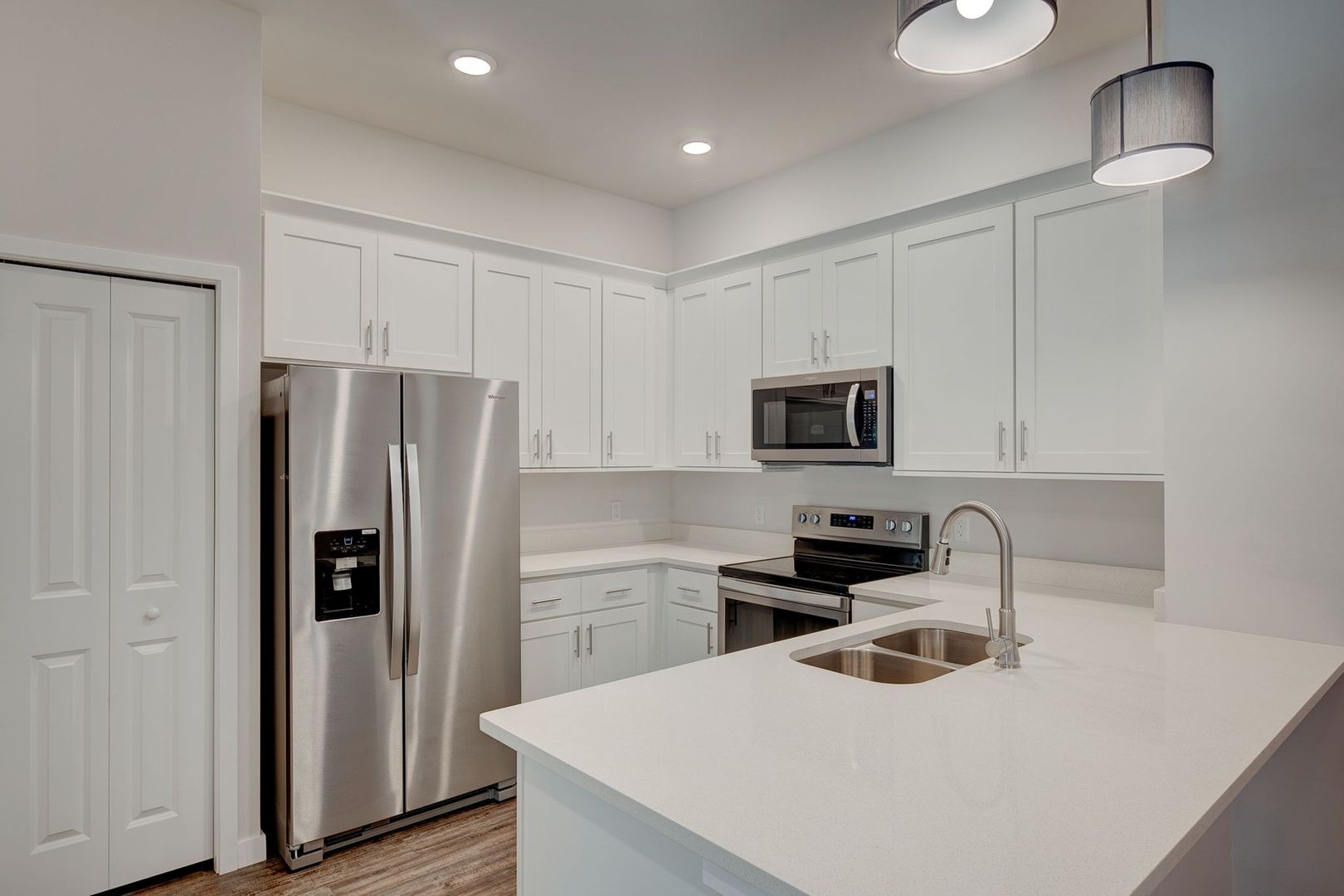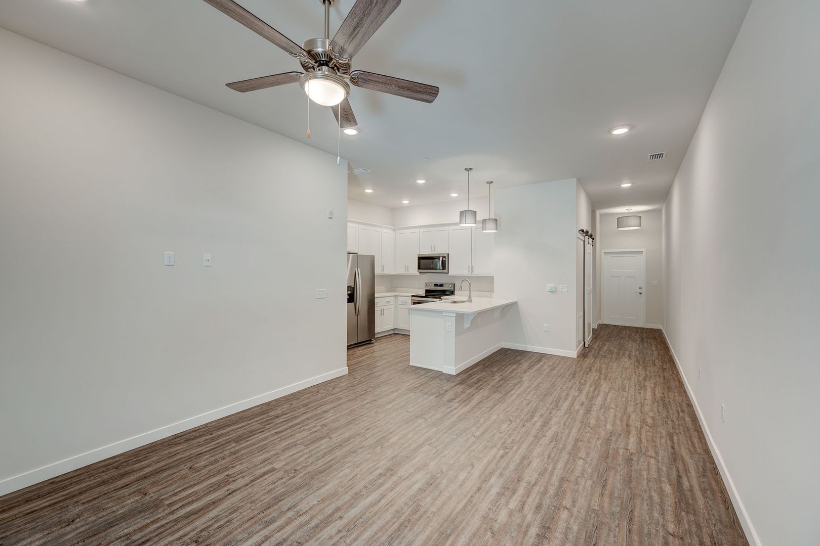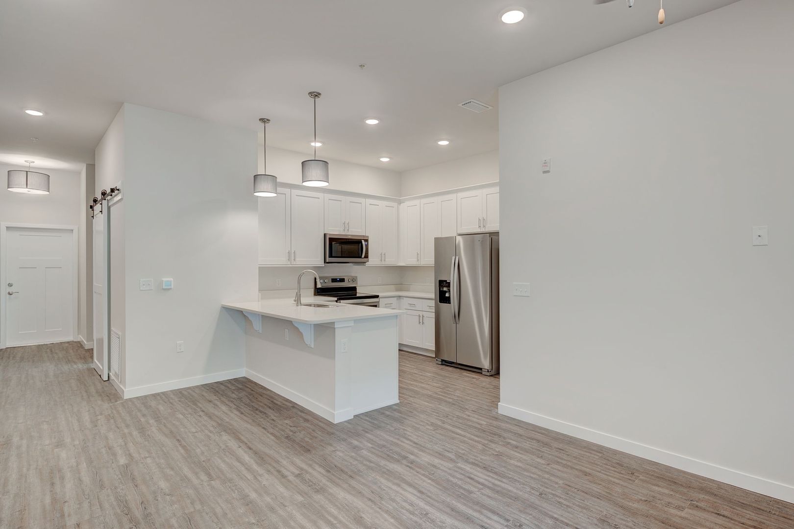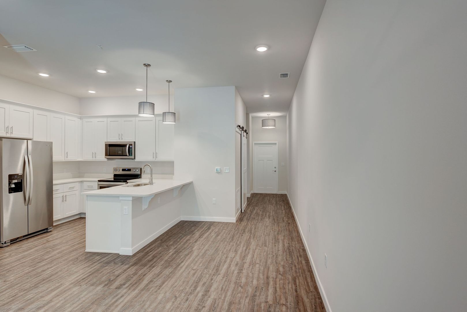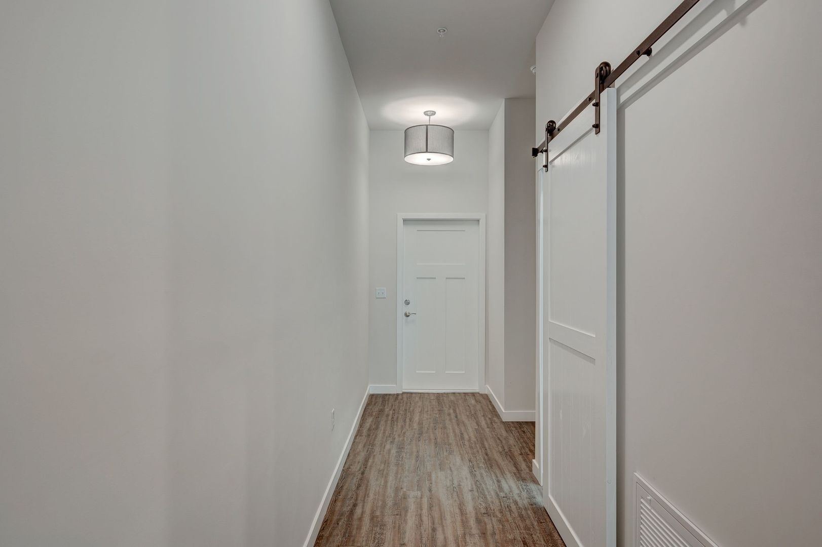 Experience boutique executive living in this stylish ground-floor apartment, built in 2020. This two-bedroom, two-bath residence features a spacious floor plan and a chic modern interior design. The elegant vinyl plank flooring is complemented by cozy carpeted bedrooms and a 65-inch mounted television in the living area.