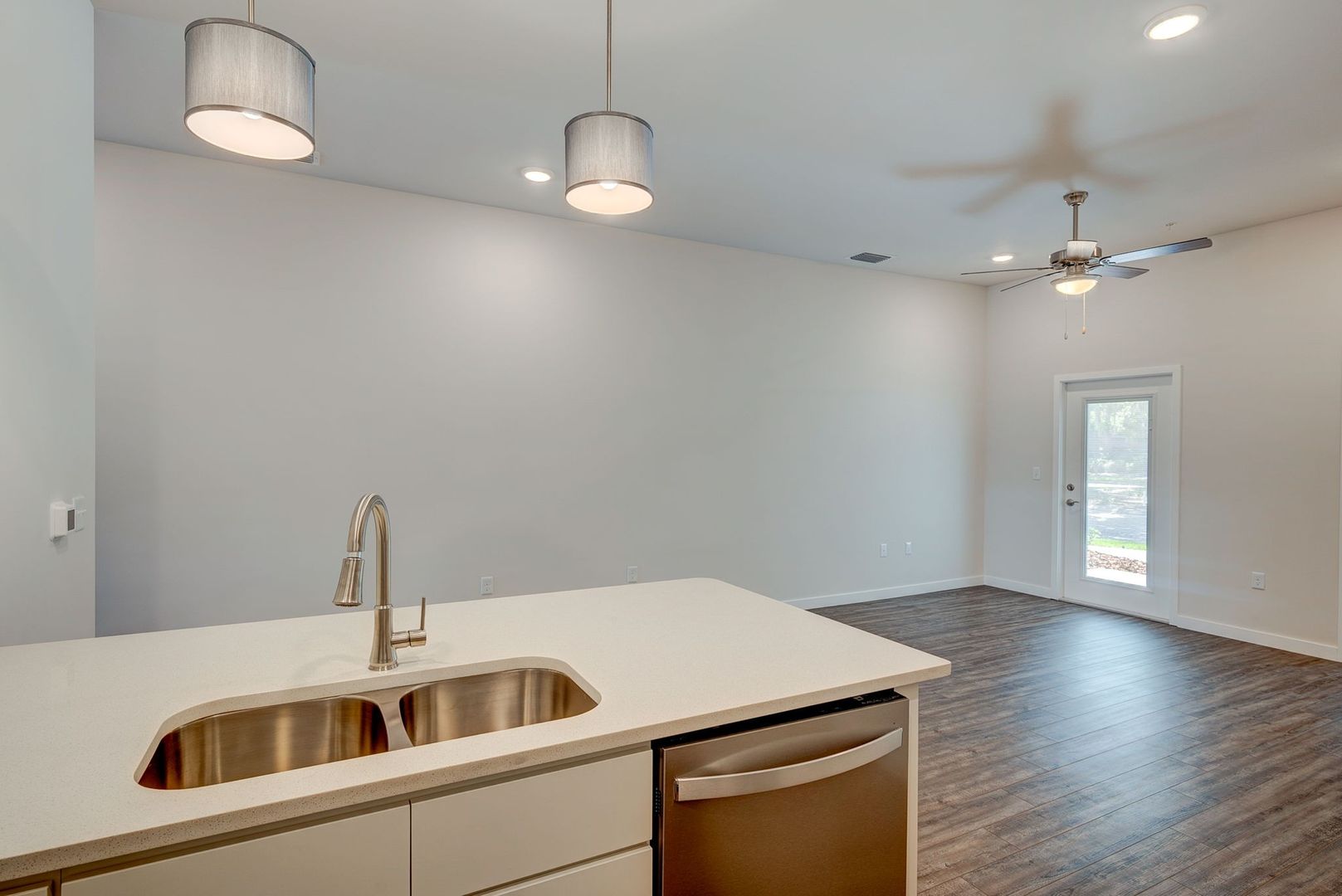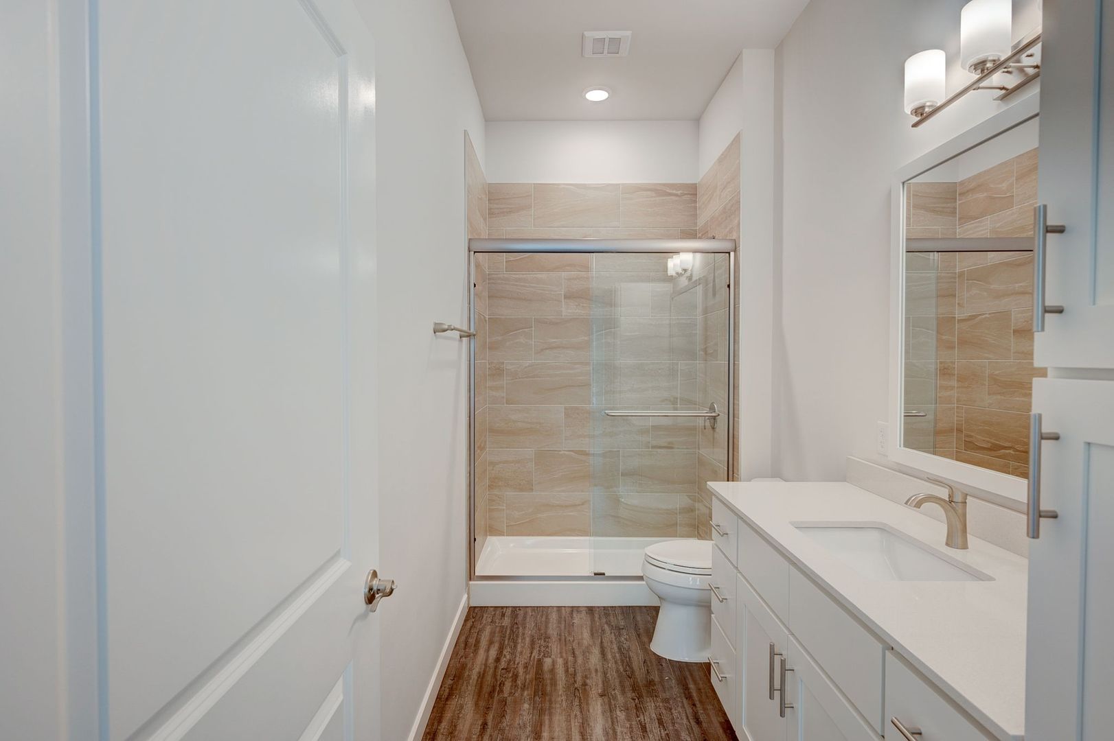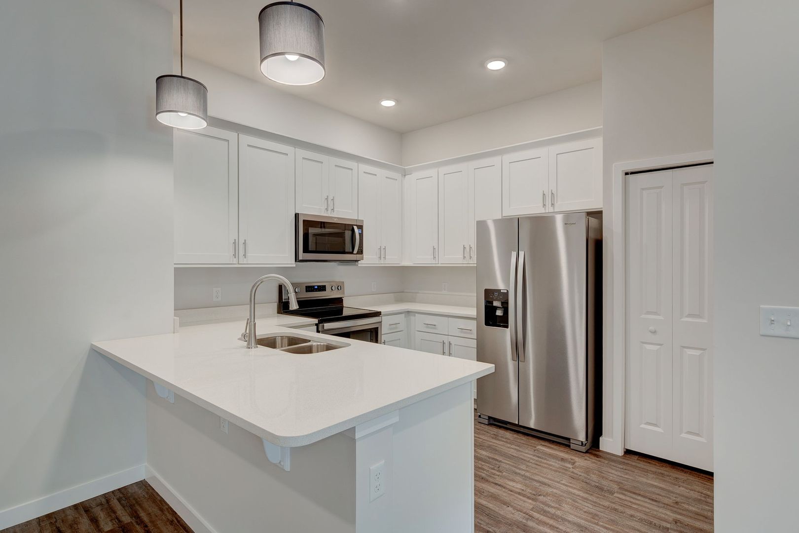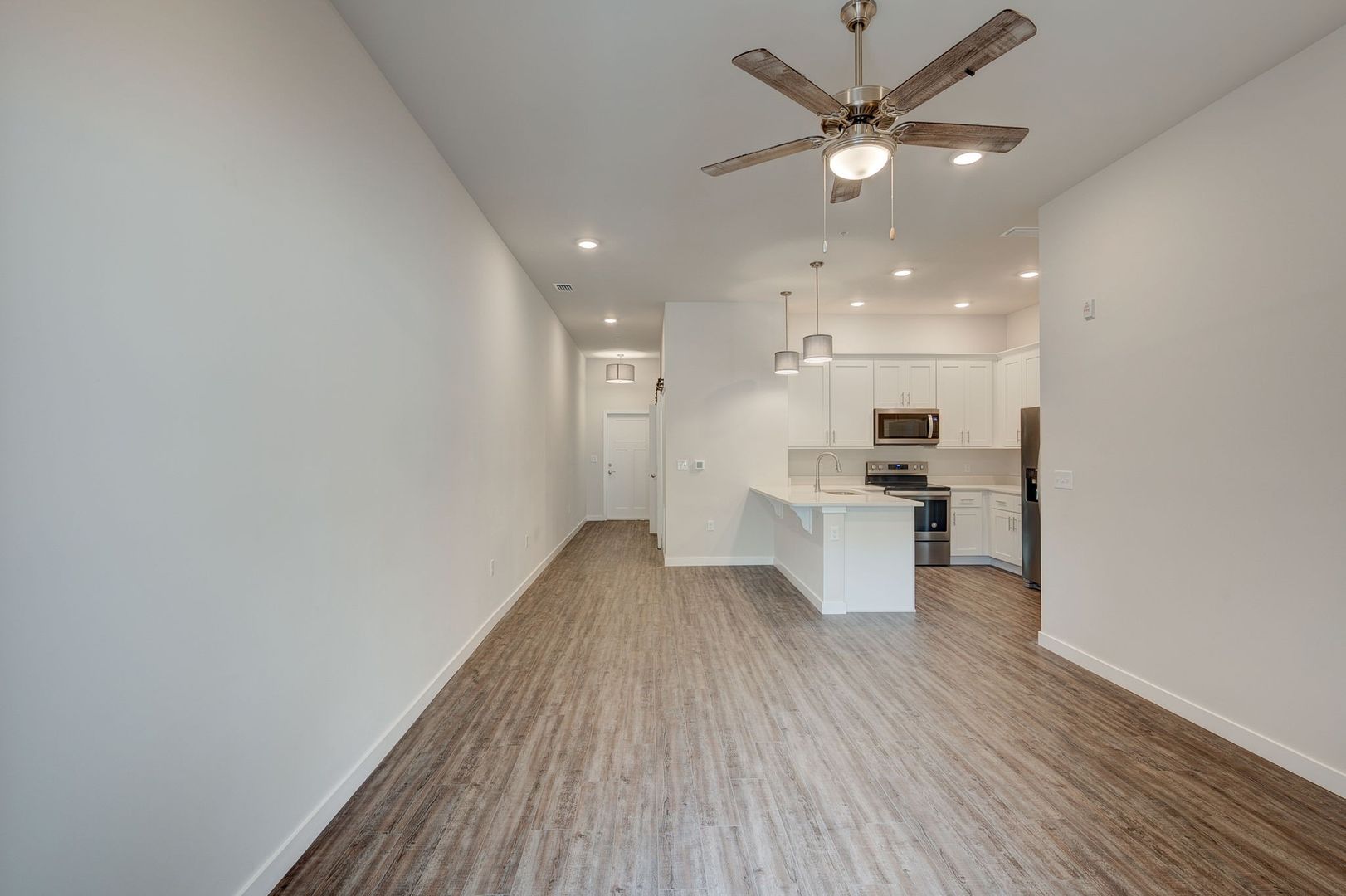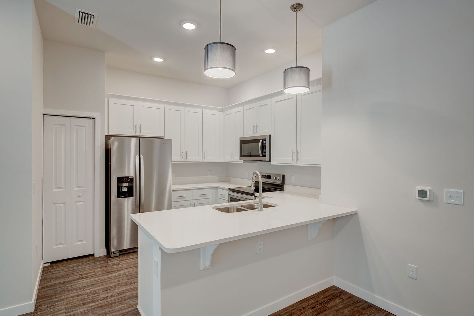 Experience boutique executive living in this stylish ground-floor apartment, built in 2020. This two-bedroom, two-bath residence features a spacious floor plan and a chic modern interior design. The elegant vinyl plank flooring is complemented by cozy carpeted bedrooms and a 65-inch mounted television in the living area.