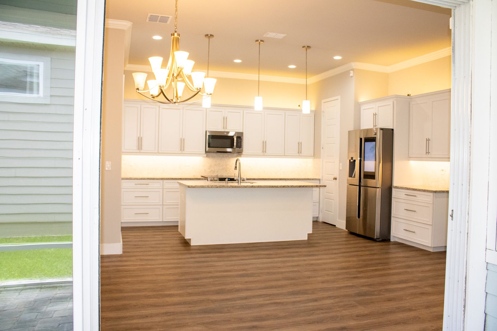 You will fall in love with the open floor plan and the high ceilings. It has 4 bedrooms/3baths, an upstairs loft, open great room that looks onto a covered back porch and fenced yard. The upstairs loft could be used as a bonus room or playroom. There is Coffered ceiling and recessed lighting in the master bedroom, and a beautiful walk-in shower and large soaking tub in the master bathroom. The beautiful island kitchen has all upgraded stainless-steel appliances with smart refrigerator, dishwasher, and microwave. Exceptional attention to detail is evident throughout, luxury vinyl flooring and light fixtures, ceiling fans, 2-car garage, surge protector throughout the whole house, and Taexx in-home tube pest control system. Ring security system, and upright freezer stay for the new tenants to enjoy. This home is less than ten minutes from Celebration Pointe, shopping centers, school, hospitals, entertainment, and so much more! HOA includes the following luxury amenities: lawn maintenance front (tenant is responsible for side and back), community pool, playground, gym, walking trail, butterfly garden, fiber optic internet and cable. Washer/dryer are included but not warranted.