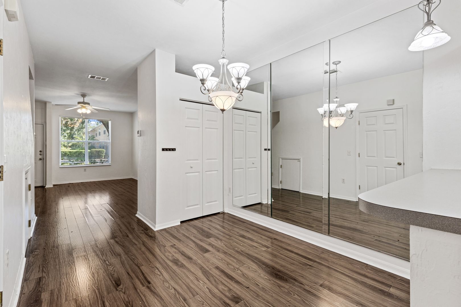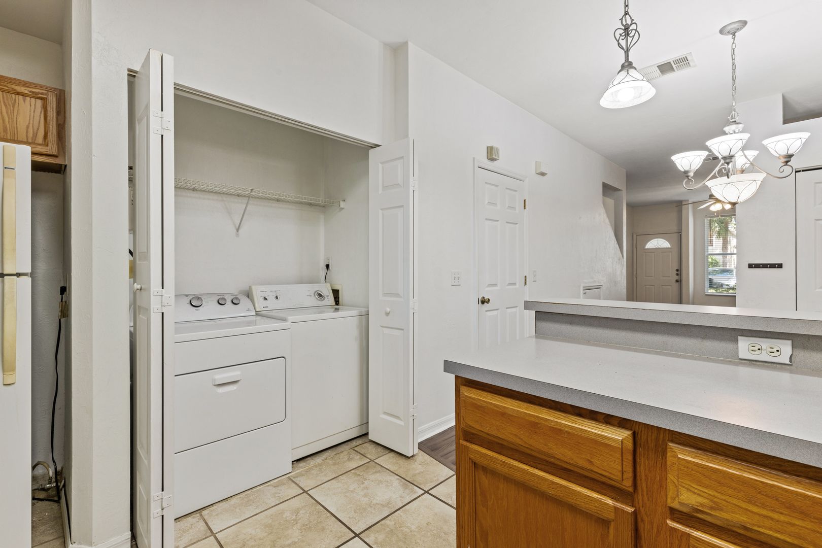 Great Location!! Great Townhouse unit!! 2 master suites on the 2nd floor, each with it's own bath, as well as a 1/2 bath on the first floor. Luxury Vinyl Plank flooring upstairs and downstairs with newer carpet on the stairs. Lots of kitchen cabinets with counter/bar facing dining room. Appliances include refrigerator, electric range, (new 2024) dishwasher, garbage disposal, and countertop microwave (not warranted). Laundry closet downstairs with washer and dryer included (not warranted). Victoria Station is a pool community with plenty of open parking for residents.