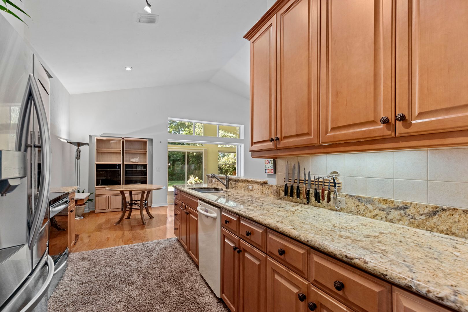 This exquisite home, features a split floor plan with three bedrooms and two bathrooms, and is located in the desirable SW Cobblefield neighborhood. The residence boasts vaulted ceilings and an abundance of windows, allowing for ample natural light. The kitchen is equipped with wood cabinets, granite countertops, and stainless steel appliances, seamlessly connecting to the great room and breakfast nook. The residence includes a formal dining room along with an interior laundry room.