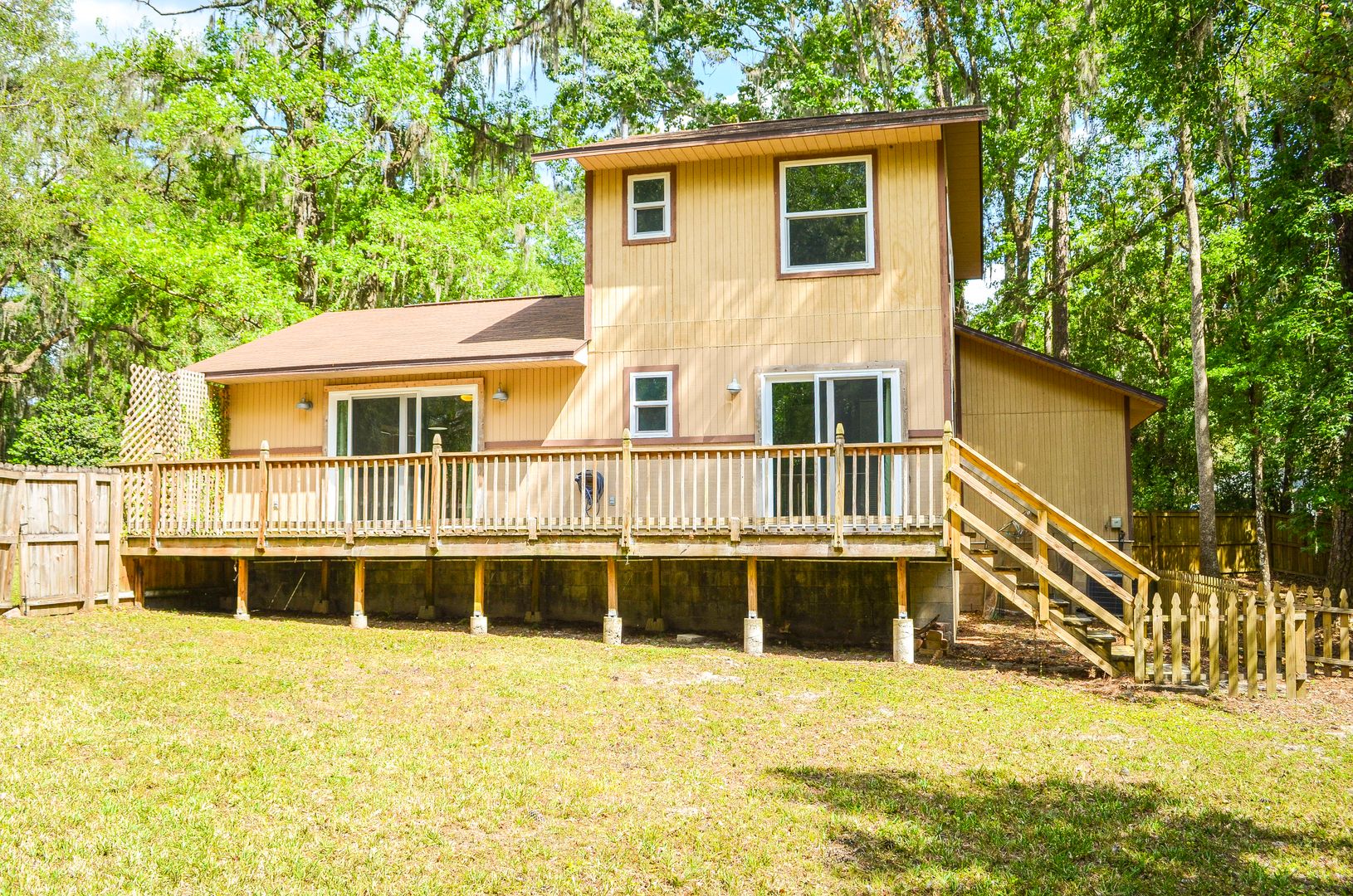 Check out this huge private fenced back yard at this Timberlane home!
