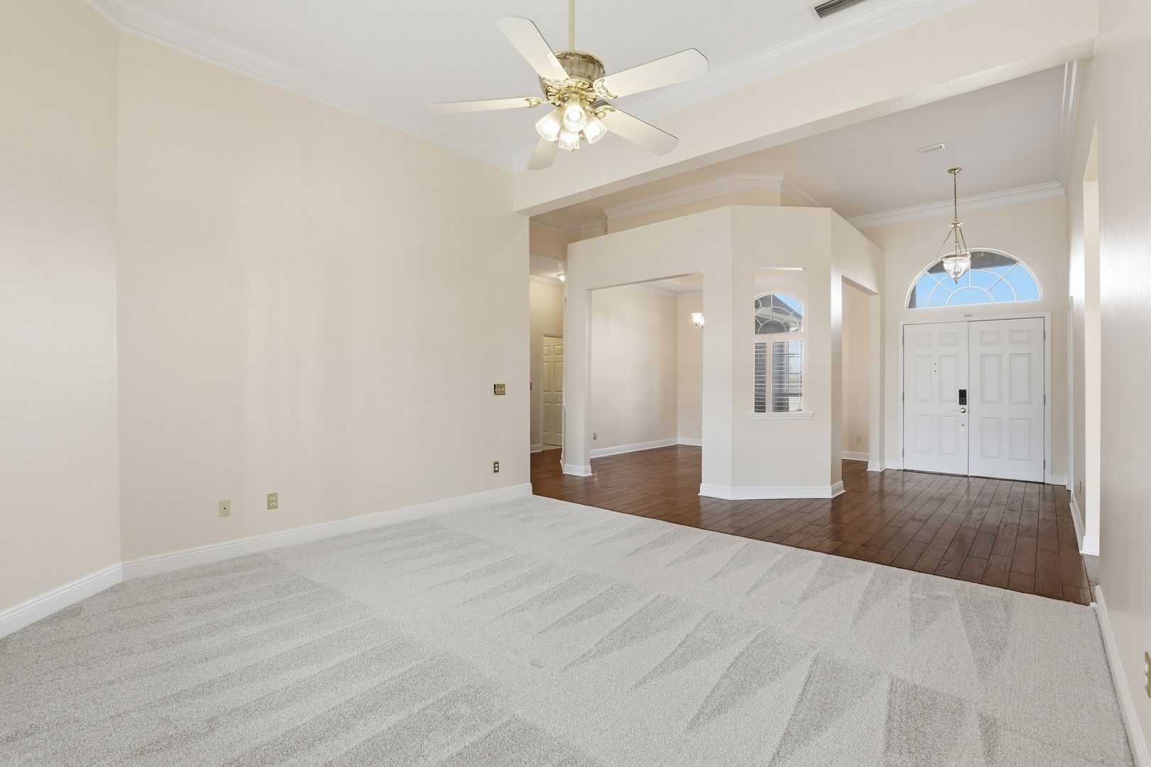 Beyond the generous living spaces, the home also offers a dedicated office and a spacious playroom, ensuring ample room for everyone. The abundant natural light, high ceilings, and open floor plan contribute to an inviting atmosphere. It is worth noting that this is a single-story home, with one bedroom situated above the garage.