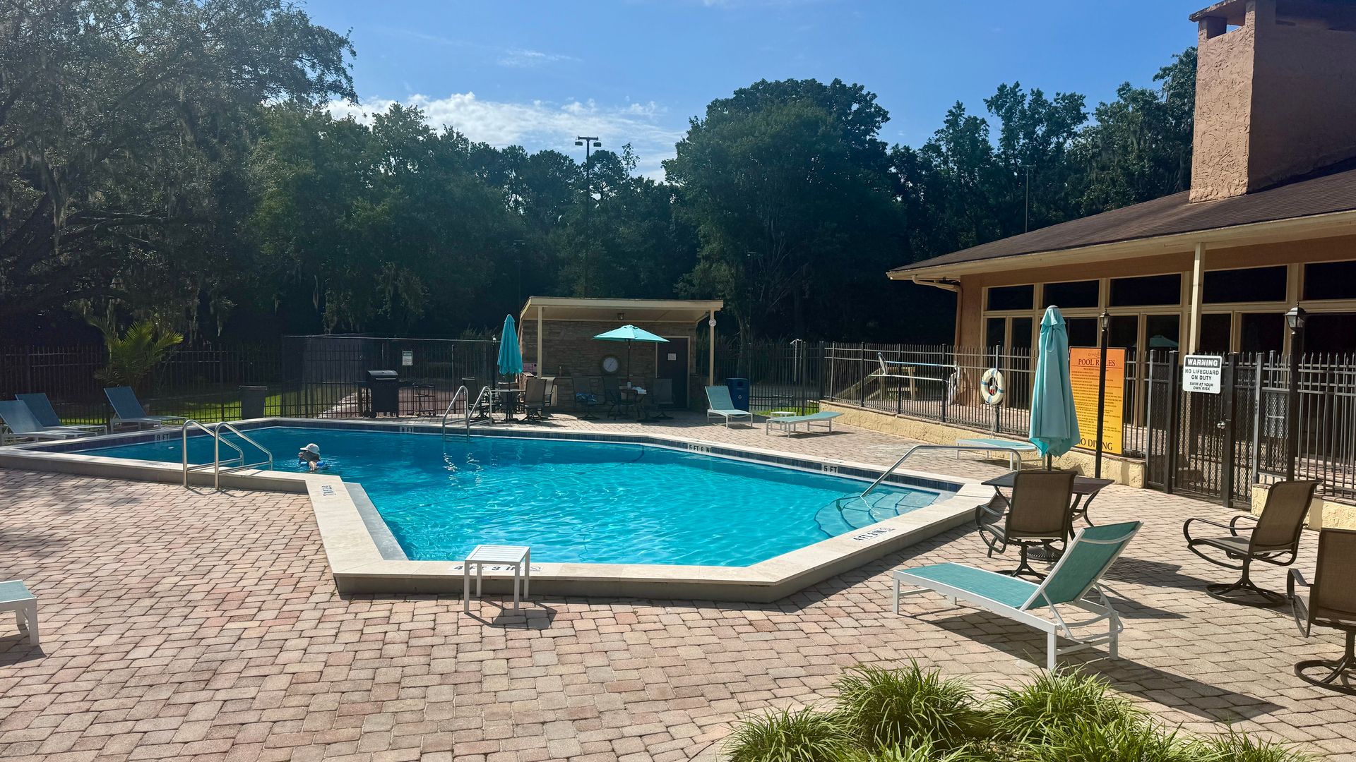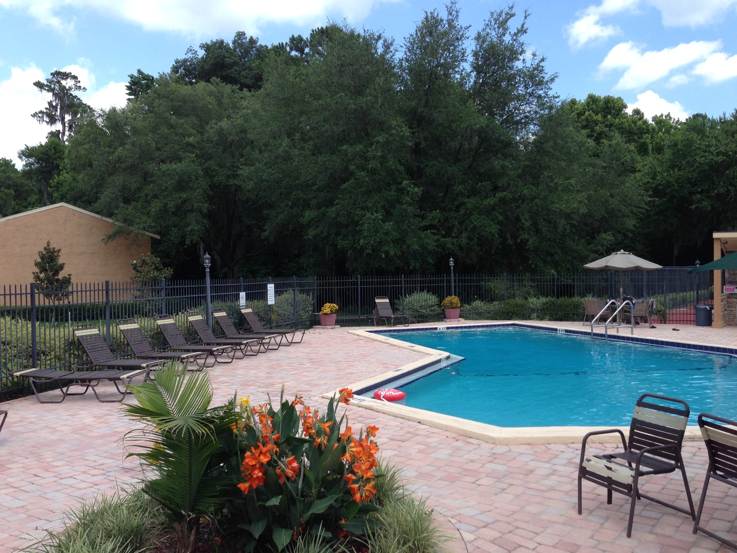 Welcome to Creeks Edge! This second floor unit has just been freshly painted and has brand new carpet and ceramic tile. There is a large, open kitchen equipped with range refrigerator, dishwasher and microwave. The kitchen overlooks a cozy dining area with windows to view the mature landscape of the property. There is a spacious living room with glass doors that lead to your own private balcony. There are three bedrooms and two full baths. There is also an indoor laundry room with a full size washer and dryer. Creeks Edge is beautiful community surrounded by lush greenery and park-like settings. It features a swimming pool, grilling area, tennis courts, clubhouse and fitness center. Creeks Edge is close to many restuarants and shopping and only a few miles to UF.