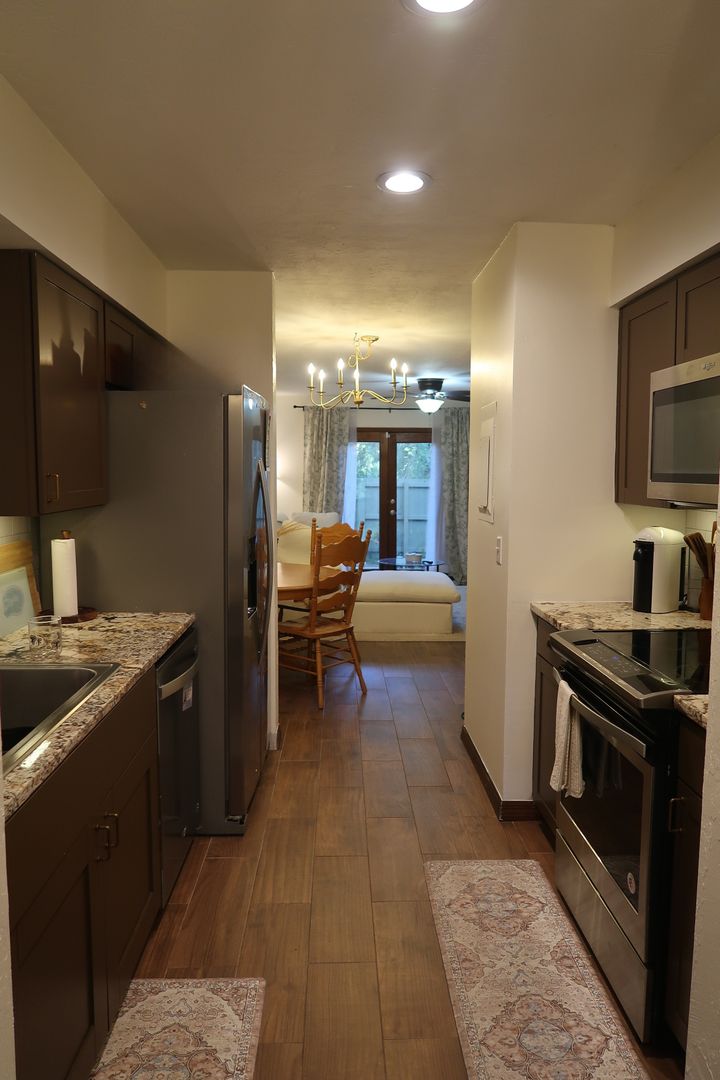 The homeowners' association diligently maintains the lush shrubbery, trees, and grass throughout the neighborhood. However, if you have a green thumb, there is ample space to cultivate your own flowers or greenery outside your unit.
